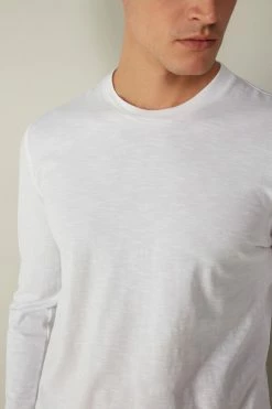 Budget ๐ Intimissimi Men Slub Cotton Long Sleeve Top White ๐