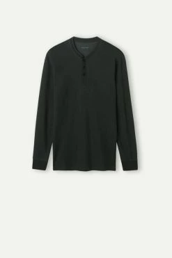 Cheap ๐ Intimissimi Men Long Sleeve Henley Top In Warm Cotton Midnight Green ๐
