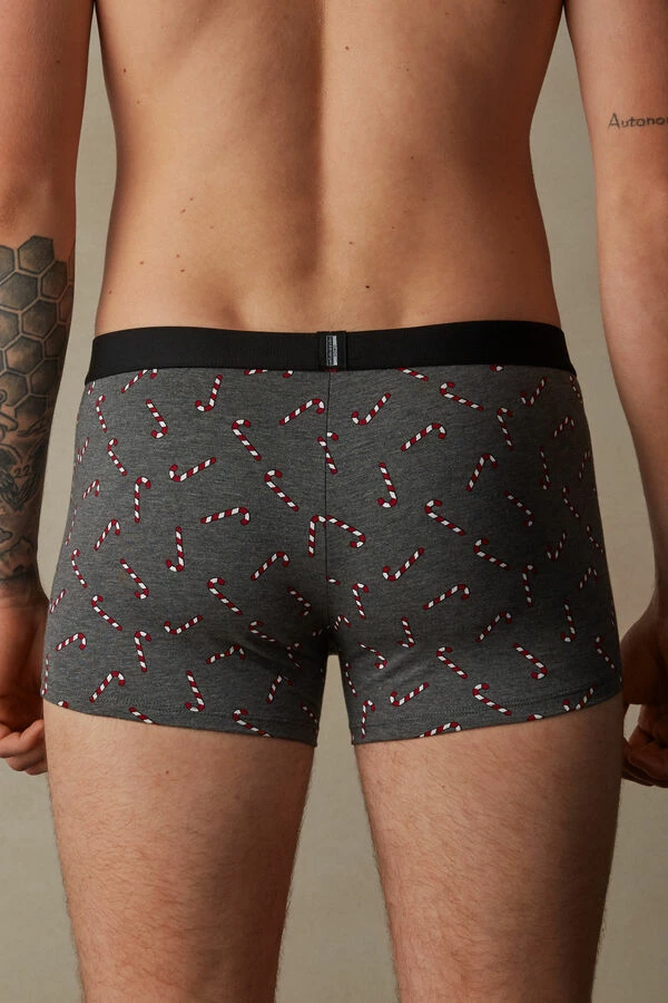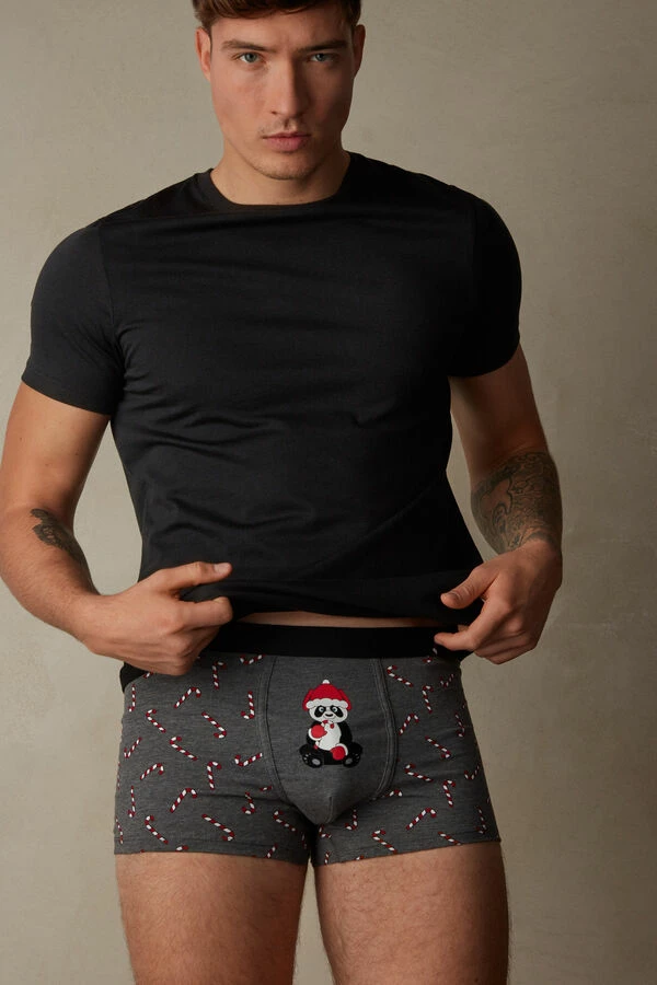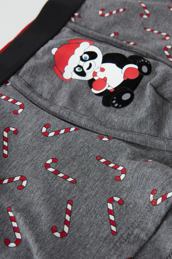 Boxers in soft stretch Supima® cotton with candy cane and panda print featuring flocked details. Exposed soft elastic, brushed on the interior, with candy cane. Softly hug the body.
