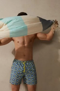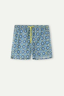 Wholesale ๐ Intimissimi Men Blue Majolica Print Swim Trunks Light Blue Tile Print โ
