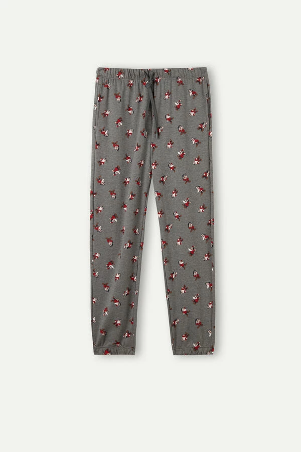 Full length cotton interlock pants that feature a Grumpy print. Drawstring waist, side pockets, and elastic cuffs. Regular fit.