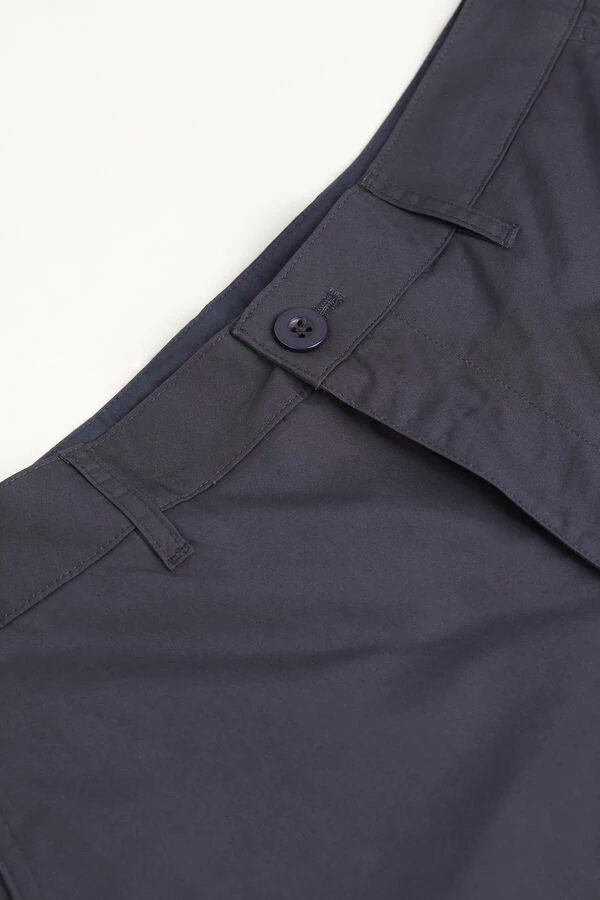 Cotton Bermuda shorts. Zip and button closure with belt loops at waist. Front pockets and back pocket.