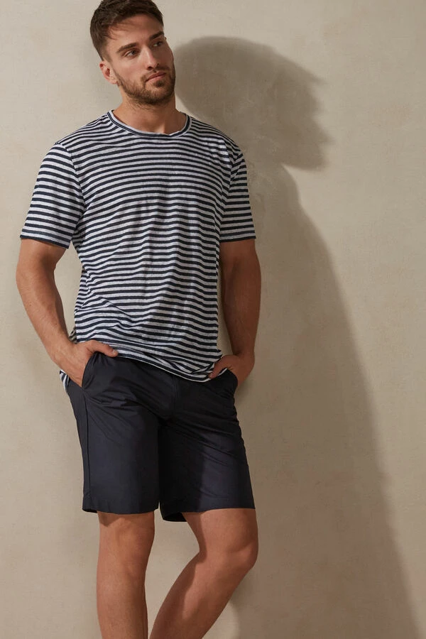 Best Sale ๐งจ Intimissimi Men Shorts In Striped Plain Weave Cotton Blue/denim Blue Stripe โ