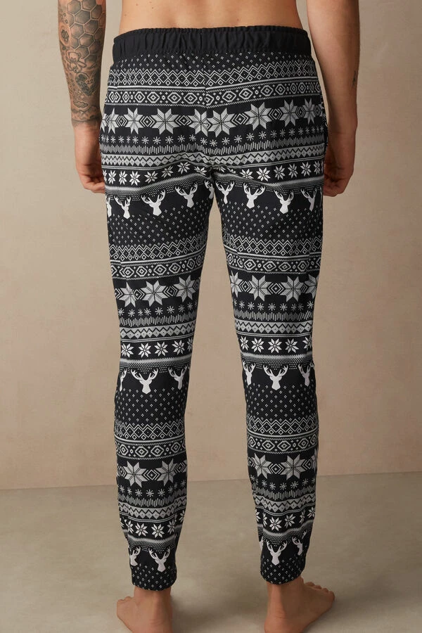 Full length pants in interlock cotton with Norwegian style pattern with solid color drawstring waist. Side pockets and elastic cuffs. Regular fit.