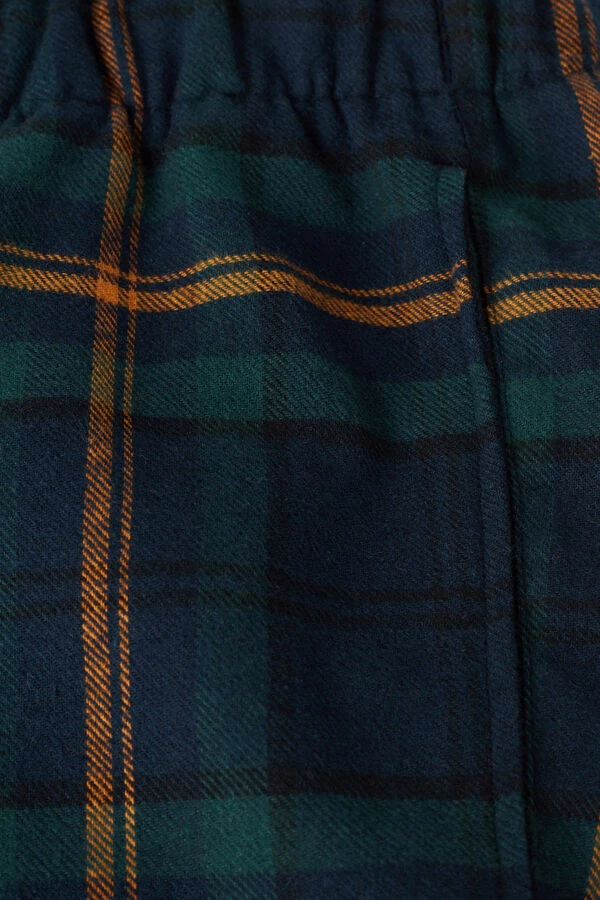 Full length pants in brushed cotton fabric with green and blue plaid pattern. Drawstring waist and side pockets. Regular fit.