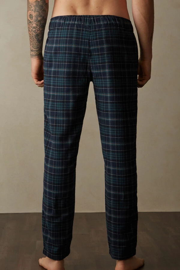 New ๐ Intimissimi Men Blue / Light Blue Tartan Long Trousers In Canvas Tartan Blu/azzurro โ