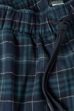 Full length pants in brushed cotton cloth with green and blue shaded plaid pattern. Drawstring waist and side pockets. Regular fit.