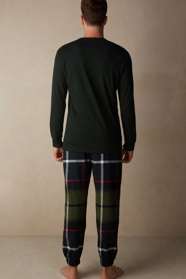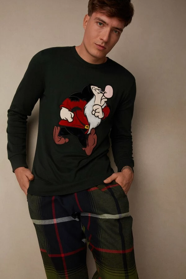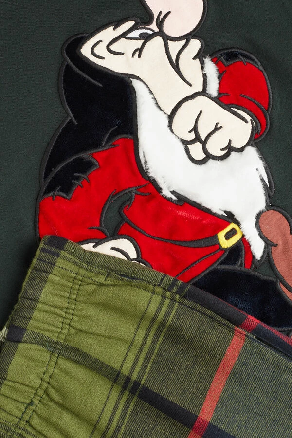 Full length pajamas with crewneck top in interlock cotton with cuffs and velvet Grumpy patch. Tartan patterned pants in brushed cotton cloth. Regular fit.