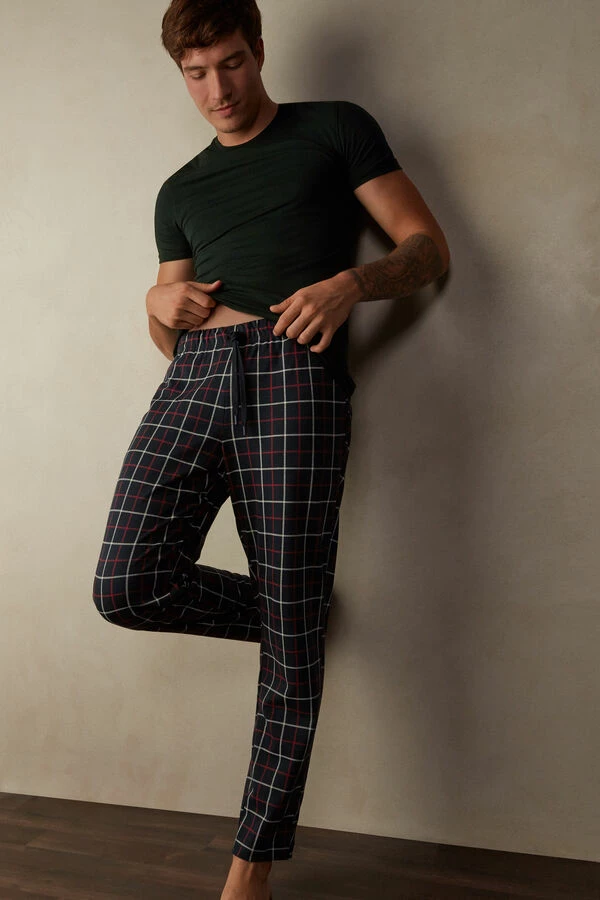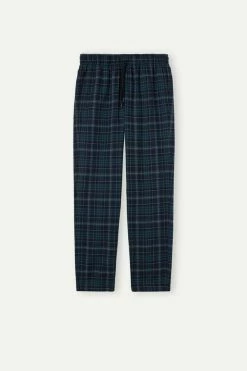 New ๐ Intimissimi Men Blue / Light Blue Tartan Long Trousers In Canvas Tartan Blu/azzurro โ