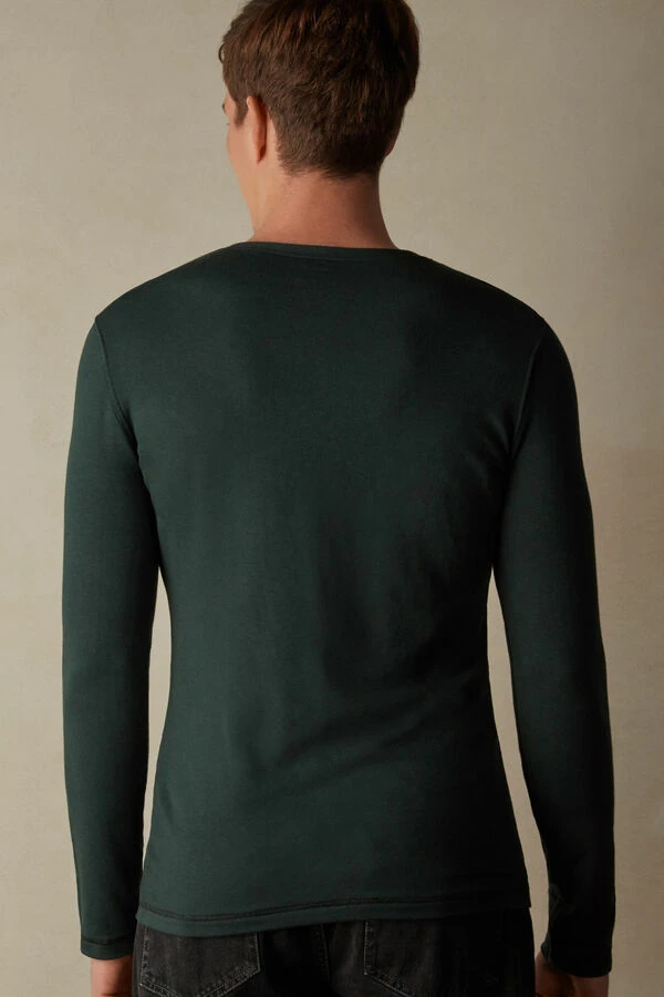 Cheap ๐ Intimissimi Men Long Sleeve Henley Top In Warm Cotton Midnight Green ๐