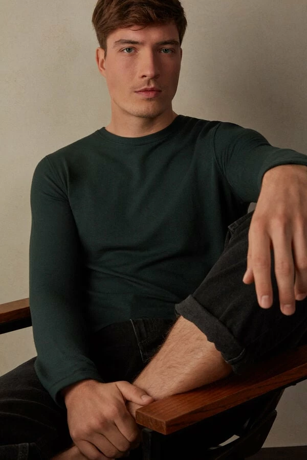 Men’s long-sleeve round-neck top in a modal-cashmere blend. Incredibly soft and comfortable. The model is 185ย cm tall and wears size L. Sold in Intimissimi Man stores.