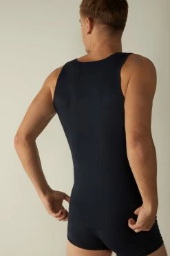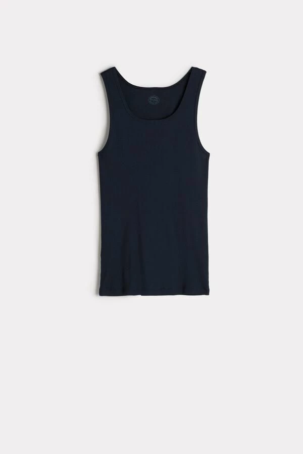 Sleeveless tank top made from Supima® cotton with wide straps, a round neckline and ribbing. It is simple and comfortable, making it ideal for wearing either as underwear or outerwear to suit the occasion.