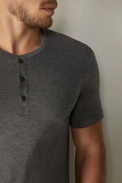 Short-sleeved grandad neckline Supima cotton® shirt.