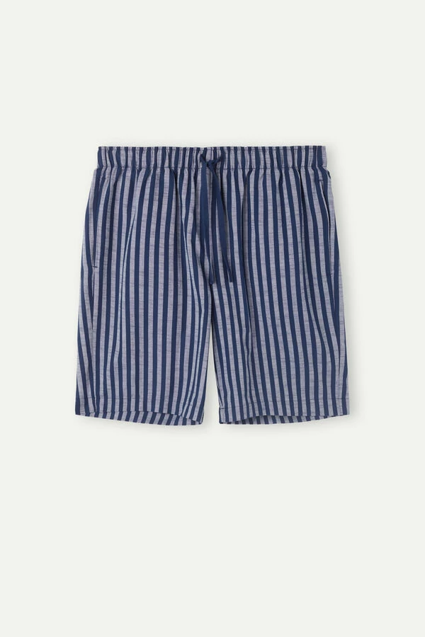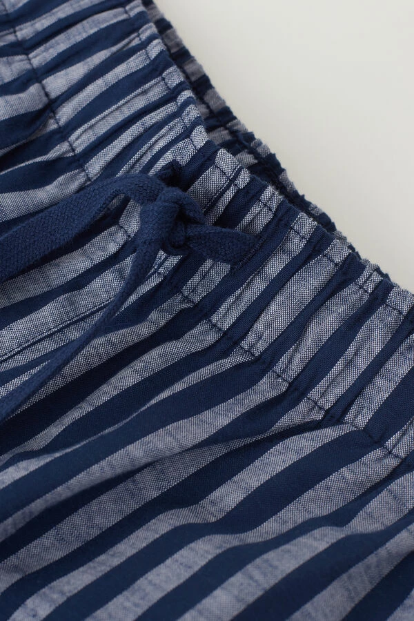 Shorts in striped patterned plain weave cotton with drawstring and side pockets.