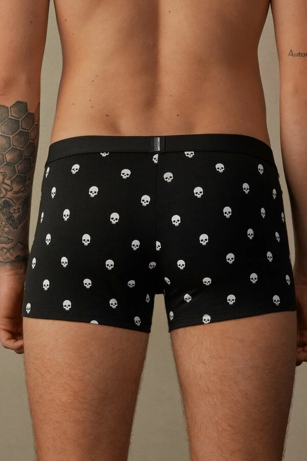 Boxers with skull print in soft stretch Supima® cotton. Exposed soft elastic, brushed on the interior, with logo. Softly hugs the body.