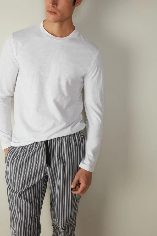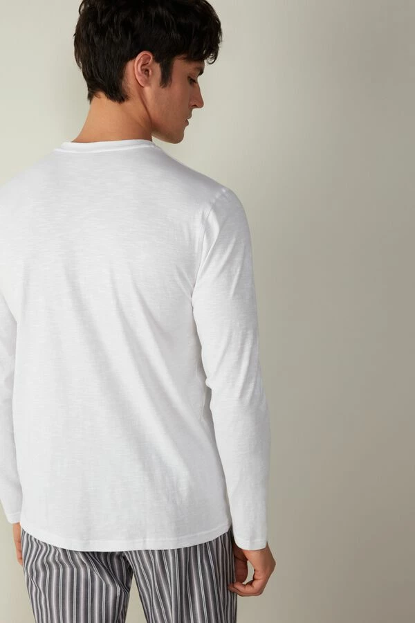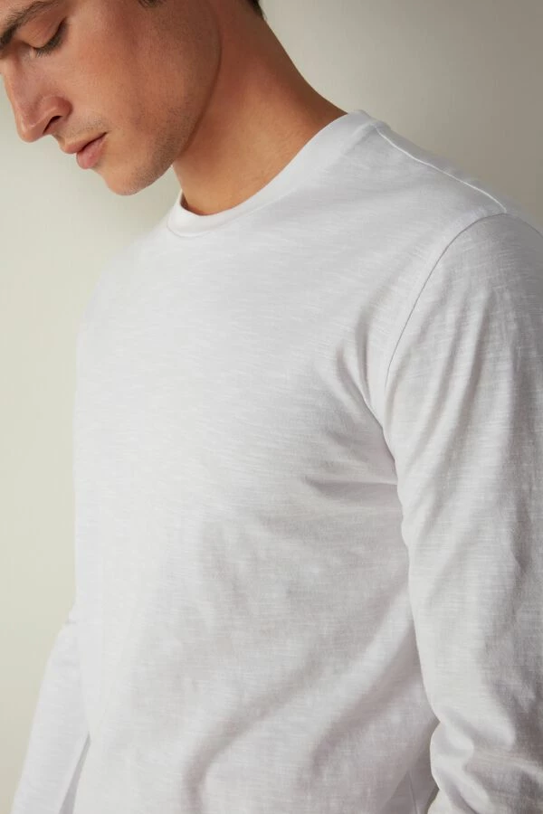 Slub Cotton Crewneck Long Sleeve Top. Regular fit