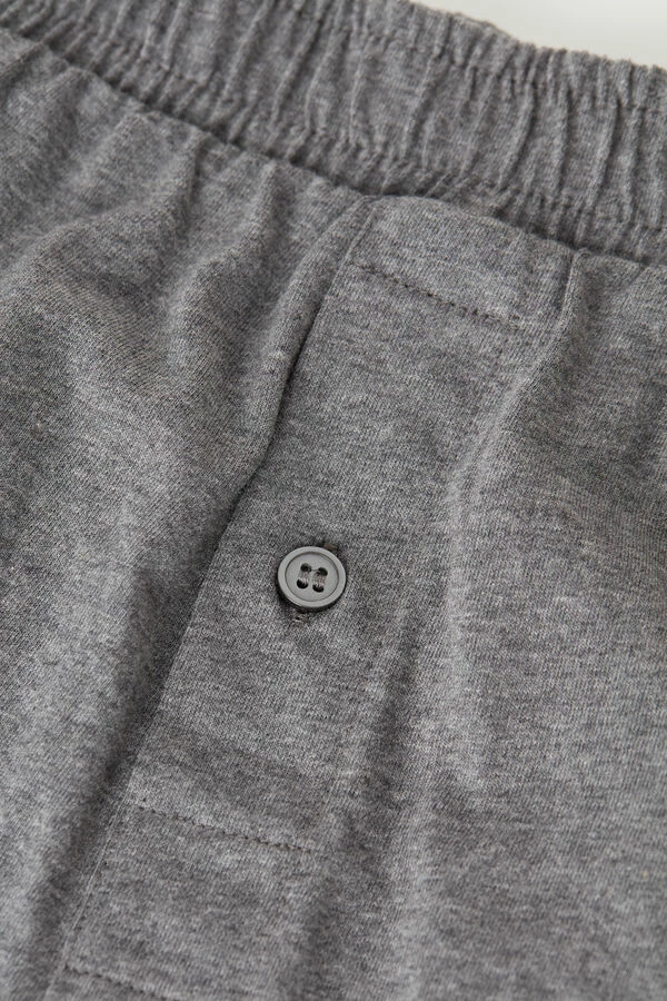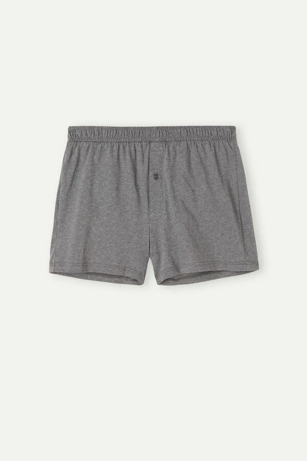 Men’s solid color boxers made in soft cotton jersey with covered elastic waistband. Button closure. Relaxed fit.