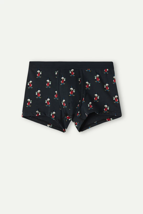 Boxers in soft stretch Supima® cotton with Scrooge McDuck print. Covered soft elastic. Softly hugs the body.