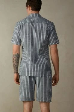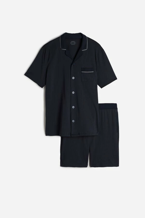 Men’s cropped pajamas in Supima cotton. Button-front top with tonal button details and short sleeves. Cropped bottoms with a stretch waistband and pockets. Sold exclusively online and in select Intimissimi stores.