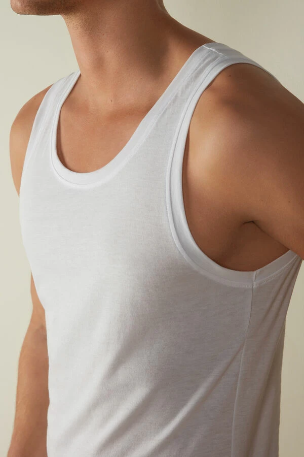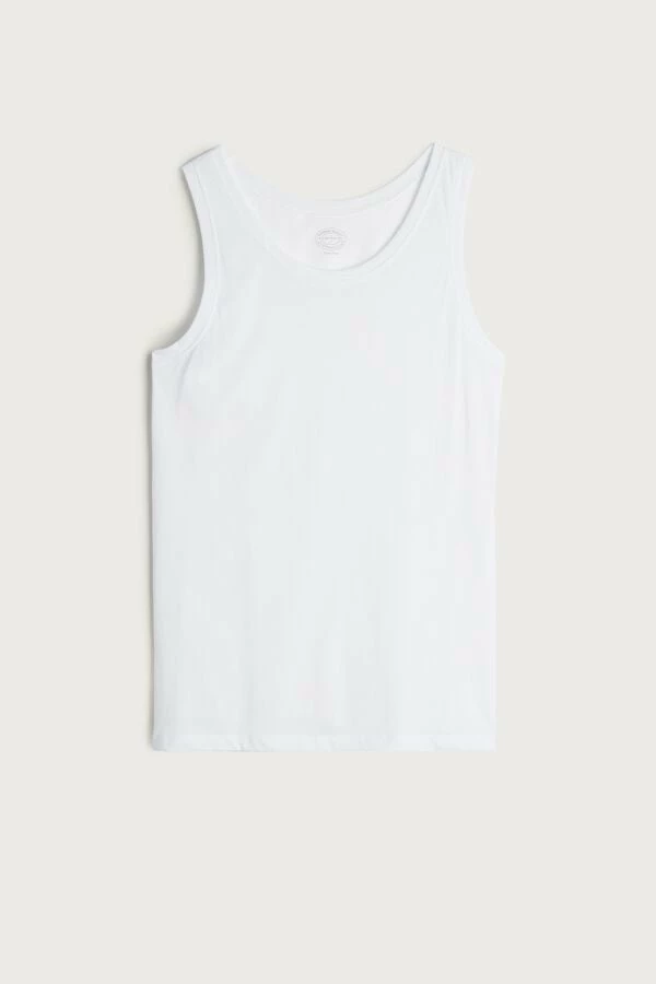 Crew neck tank top in 100% Extra-Fine SUPIMAยฎ Cotton. Incredibly soft and breathable, this premium fiber offers excellent elasticity. The structure of the fabric means it will last wash after wash. A simple, comfortable style that’s ideal for any occasion, whether worn as an undershirt or as an everyday shirt.