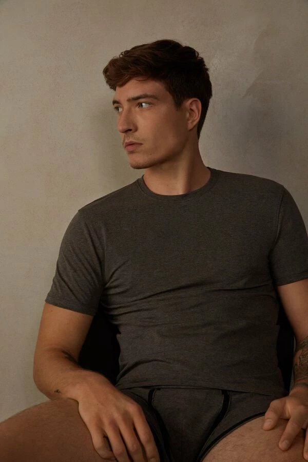 Promo ✔️ Intimissimi Men Short Sleeve Crew Neck T 👕 Shirt In Supima® Cotton Light Heathered Grey ✔️