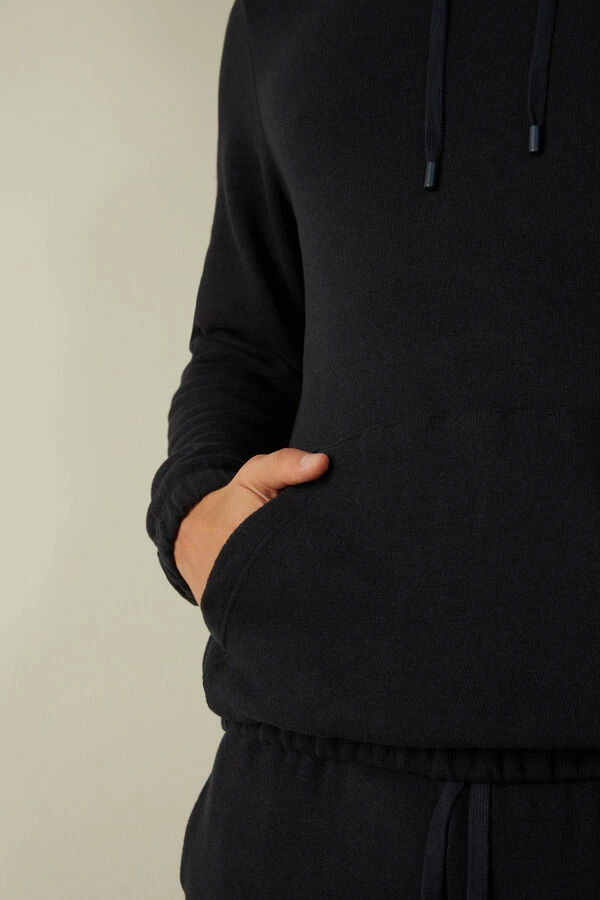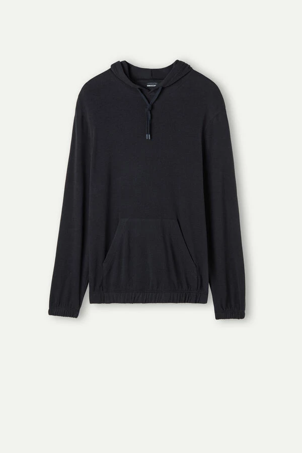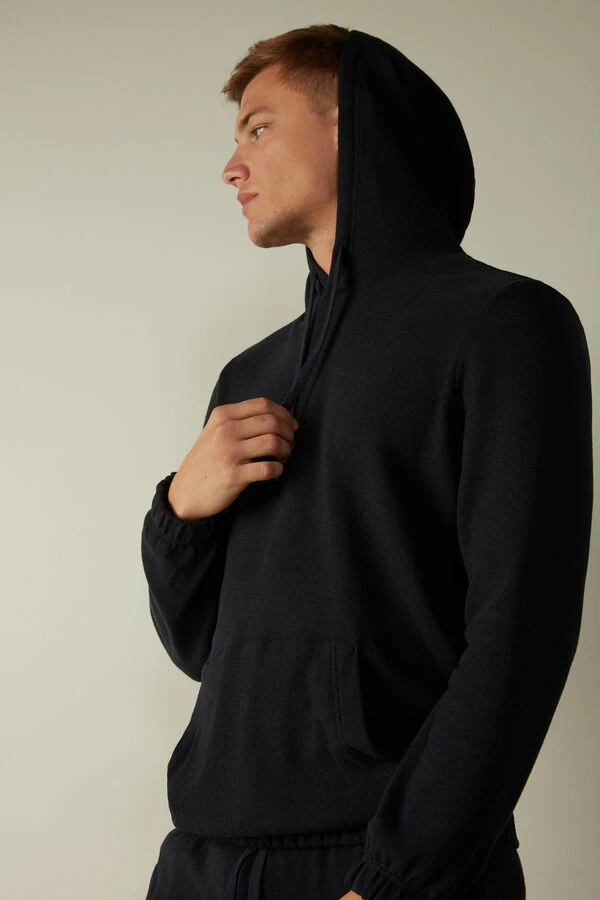 Soft tricot sweatshirt with hood and patch pocket ideal for those wanting a warm and comfortable item.